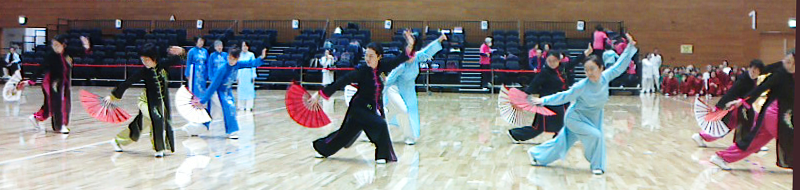 熊本県武術太極拳連盟の設立当初より参加、20周年の記念大会には30名で「花架拳二路」と「花扇功」を表演しました。